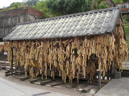 この駅に来た目的は竹筒にお願い事を書いて、ぶら下げるといった、日本で言う絵馬のようなものを見るためです!
