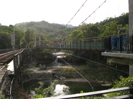 しばらく歩き、看板が見えてきました。十分瀑布の入り口は平渓線の線路の前にあり、十分駅の1つ前の大華駅から線路を歩いても行けます。