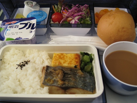 予定通り飛行機は出発し、しばらくすると朝食が来ました。