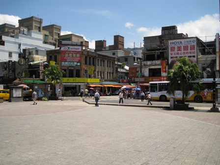 駅前の広場と美食街の入り口です。